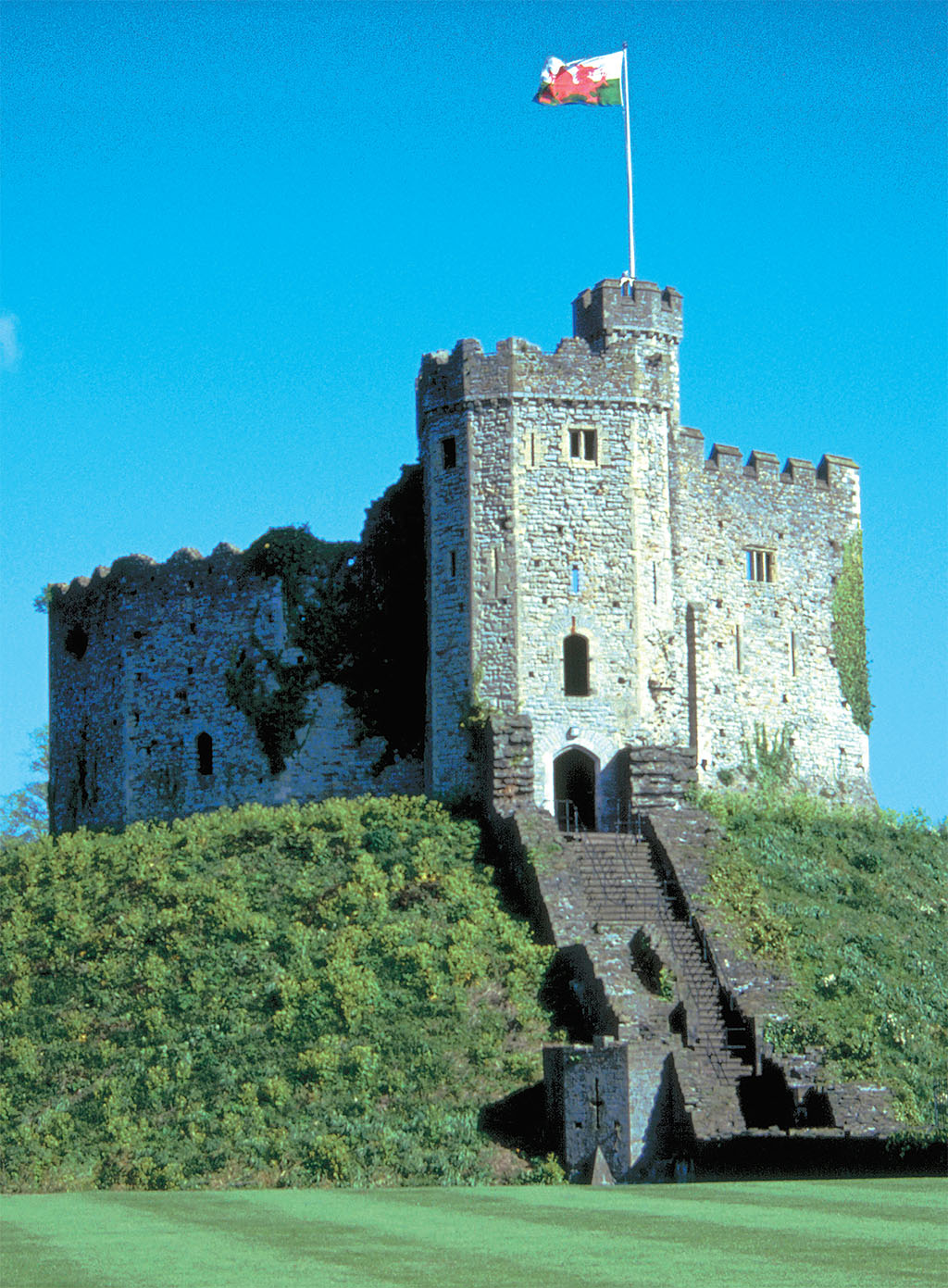 From the battlements of Cardiff Castle’s medieval keep, the flag of the red dragon flies over the Welsh capital.[/caption]